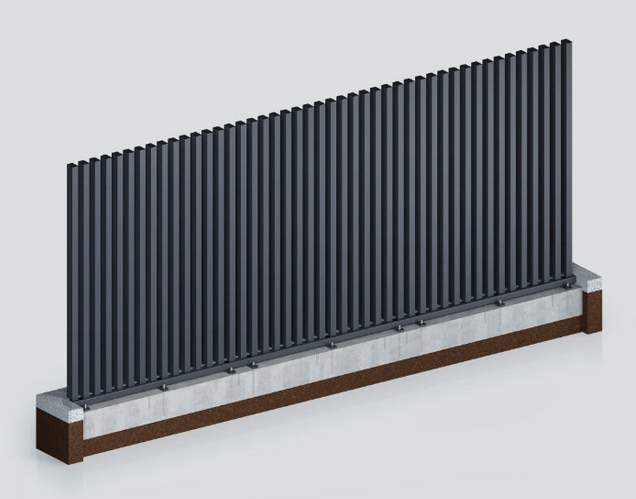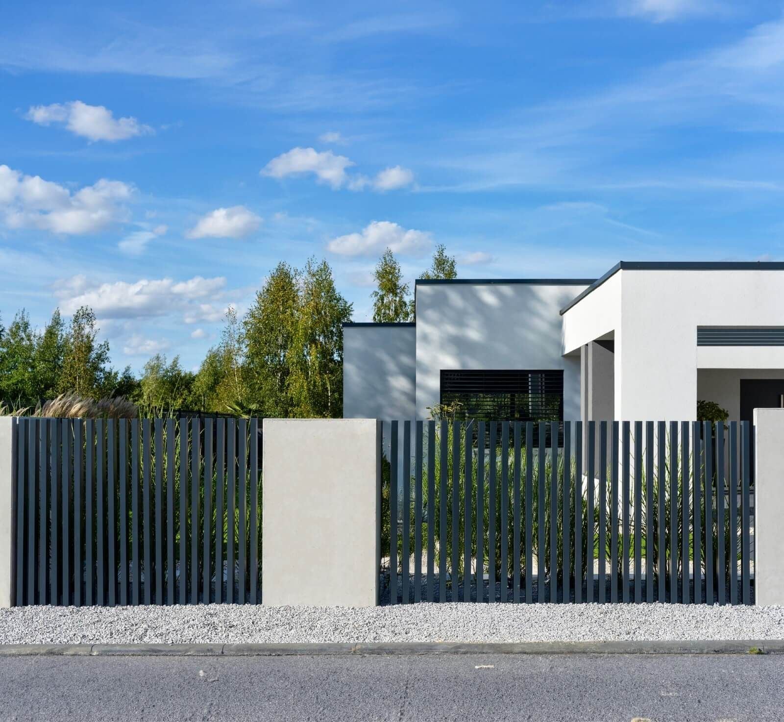 Vertikale Zaunelemente in unterschiedlichen Höhen für ein modernes Erscheinungsbild