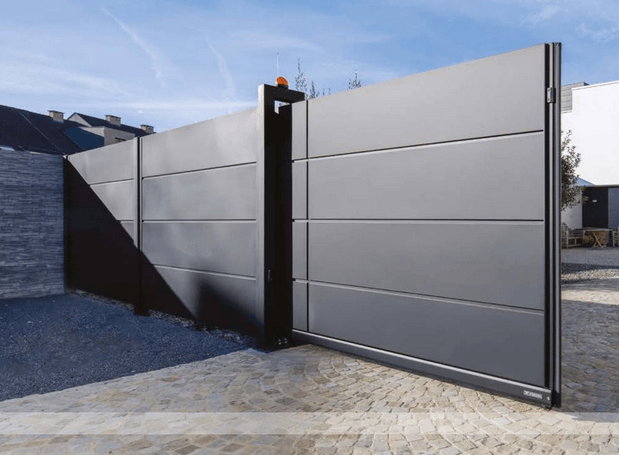 Das Torsystem eignet sich ideal für Einfahrten, Gewerbeobjekte, moderne Wohnhäuser sowie repräsentative Grundstücke. Durch die klare Linienführung und das zeitlose Anthrazit-Design fügt sich das System perfekt in jede moderne Architektur ein.