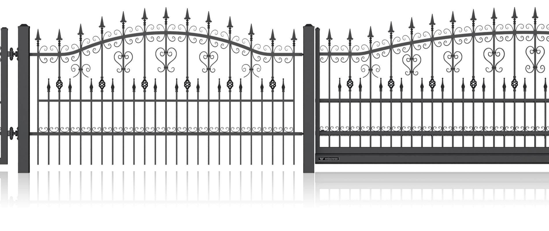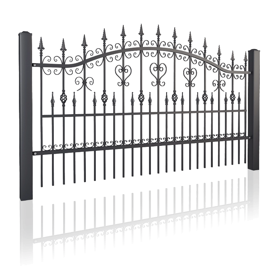 Dieses Modell besticht durch seine geschwungene Oberlinie und die aufwendige Detailverarbeitung. Die Kombination aus klassischen Lanzenspitzen, dekorativen Zierkugeln und kunstvollen S-Ornamenten macht diesen Zaun zu einem echten Blickfang und bietet gleichzeitig einen soliden Schutz für Ihr Eigentum.